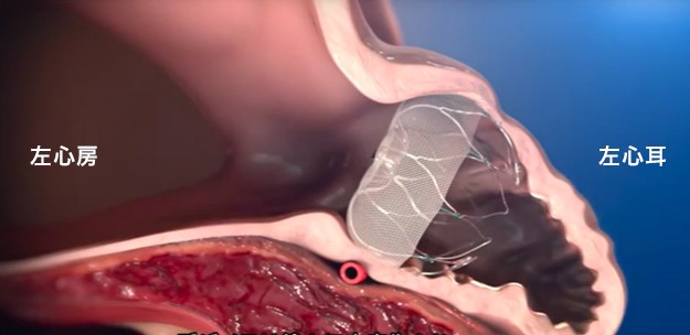 血栓のできやすい左心耳を塞ぐように設計されており、術後には、留置されたデバイスを覆うように内皮化が進み、一度の治療で左心耳が永久的に閉鎖され、脳梗塞のリスクを低減することができます。
